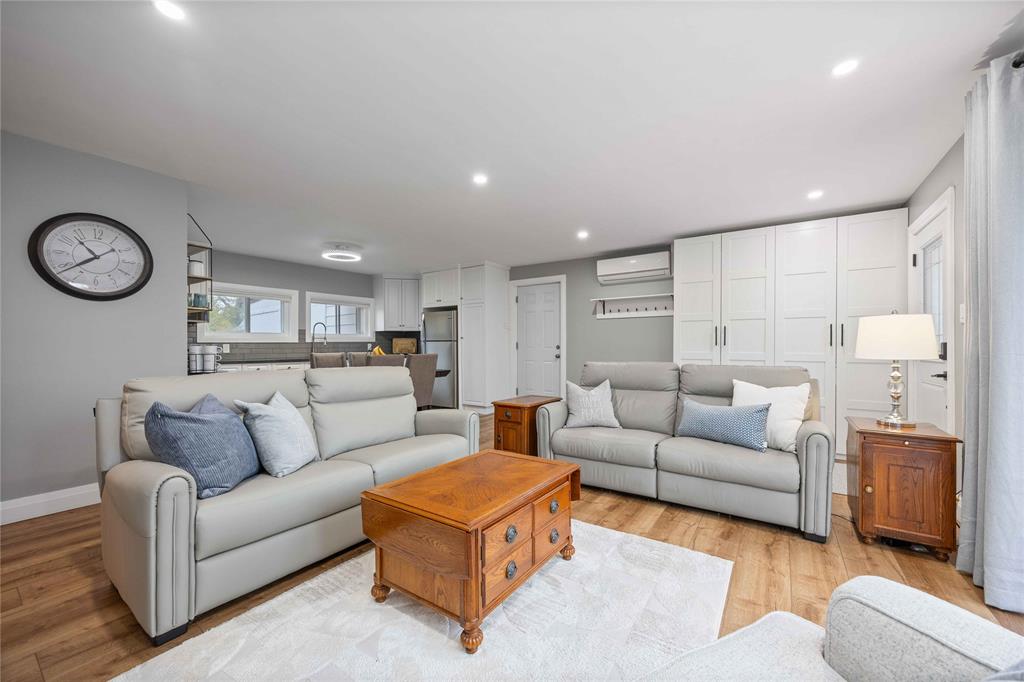 From the moment you arrive, you'll fall in love with the curb appeal and stunning landscaping. Located on a quiet street in a highly desirable neighbourhood, this fully updated home is move-in ready and close to parks, beaches, and amenities. Enjoy easy one-floor living with an open-concept layout featuring 3 bedrooms and a beautifully updated bathroom. The modern interior showcases new vinyl windows, stylish vinyl flooring, and tasteful finishes throughout. Outside, you'll find a large concrete driveway, inviting front patio, and brand-new backyard shed. The heated garage includes additional bonus space—perfect for a workshop, gym, or extra storage. A truly turn-key home you'll be proud to call your own!